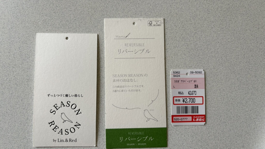 タグを取っておいたので、店舗で探す時にお役立てください。